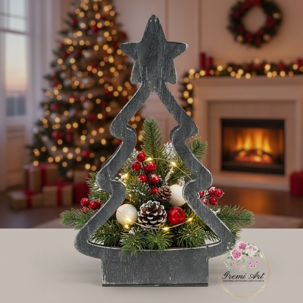 43,00 zł - detalDrewniana choinka z gwiazdą do własnej aranżacji. Idealnie nada się jako baza pod stroiki bożonarodzeniowe lub jako artykuł dekoracyjny. Produkt wykonany ręcznie. Nie wszystkie produkty drewniane są szlifowane aby zachowały wygląd naturalny. Celowe przecieranie, postarzanie drewna dodaje mu uroku. Produkty wykonane z drzewa lub sklejki mogą posiadać sęki, rysy lub pęknięcia.