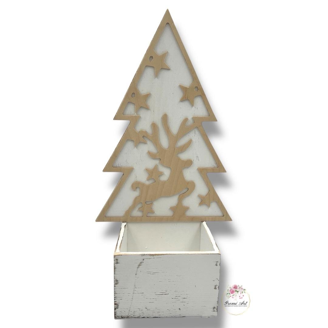 -8%47,00 zł - detalDrewniana choinka ze skrzynką do własnej aranżacji. Idealnie nada się jako baza pod stroiki bożonarodzeniowe lub jako artykuł dekoracyjny. Produkt wykonany ręcznie. Nie wszystkie produkty drewniane są szlifowane aby zachowały wygląd naturalny. Celowe przecieranie, postarzanie drewna dodaje mu uroku. Produkty wykonane z drzewa lub sklejki mogą posiadać sęki, rysy lub pęknięcia.