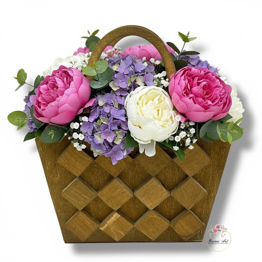 Koszyk może pełnić funkcję osłonki na kwiaty, boxu prezentowego lub stylowej dekoracji wnętrza – idealnej na Dzień Mamy, urodziny, imieniny, święta, a także jako prezent „bez okazji”.