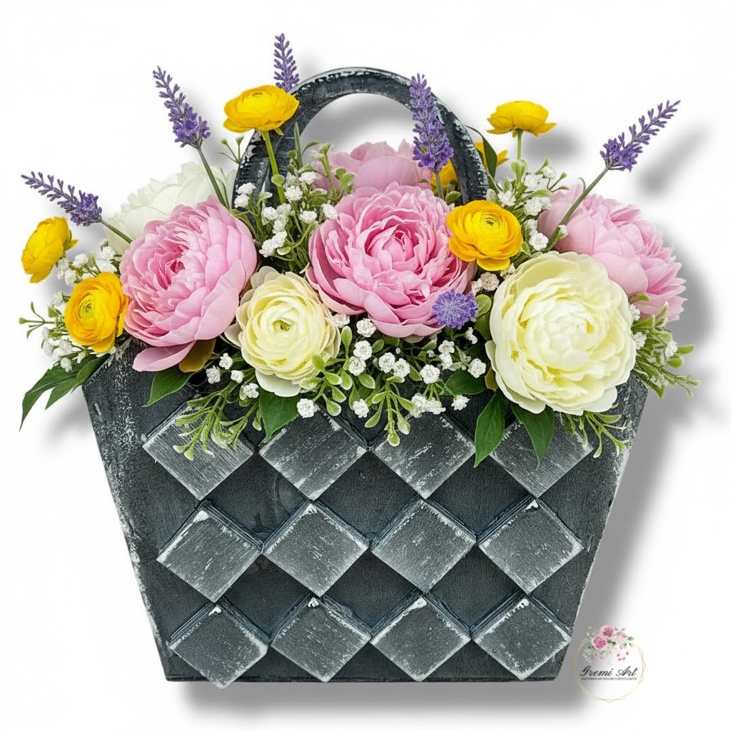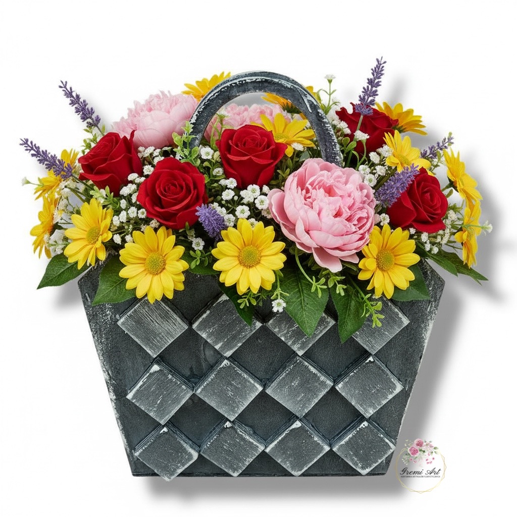 Koszyk może pełnić funkcję osłonki na kwiaty, boxu prezentowego lub stylowej dekoracji wnętrza – idealnej na Dzień Mamy, urodziny, imieniny, święta, a także jako prezent „bez okazji”.