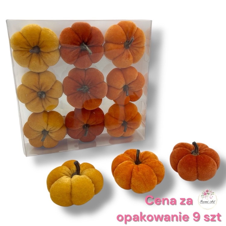 Zestaw dekoracyjnych dyń materiałowych z weluru – 9 sztuk