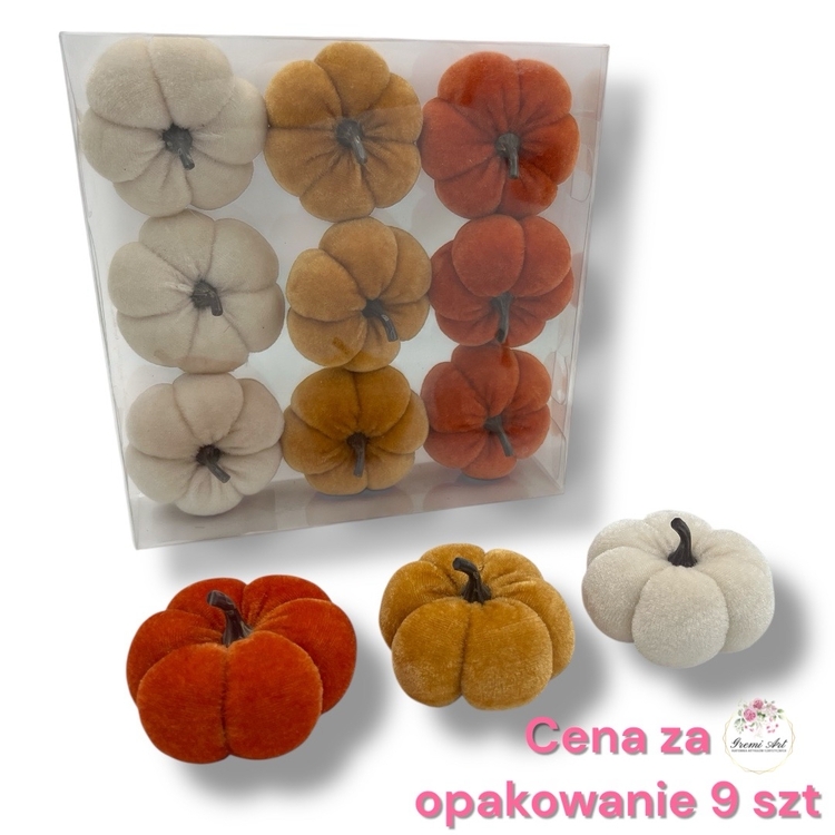 49,00 zł - detalZestaw dekoracyjnych dyń materiałowych z weluru – 9 sztuk