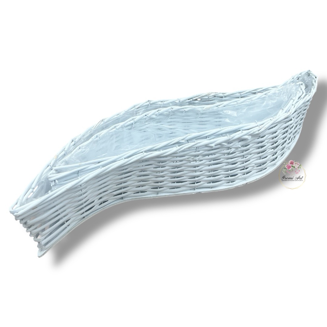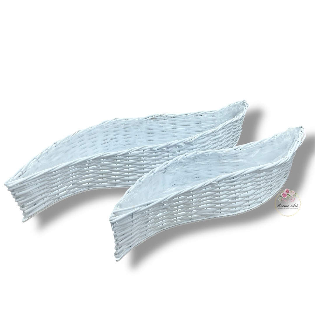 45,00 zł - detalBiały komplet wiklinowych osłonek „Fale” to praktyczny i pojemny zestaw idealny do tworzenia efektownych kompozycji kwiatowych i dekoracyjnych. Osłonki wyróżniają się fantazyjnym, falowanym kształtem, który nadaje aranżacjom lekkości i świeżości. Jasny, biały kolor doskonale wpisuje się w styl skandynawski, rustykalny i nowoczesny. Wewnętrzna folia ochronna zabezpiecza przed wilgocią.