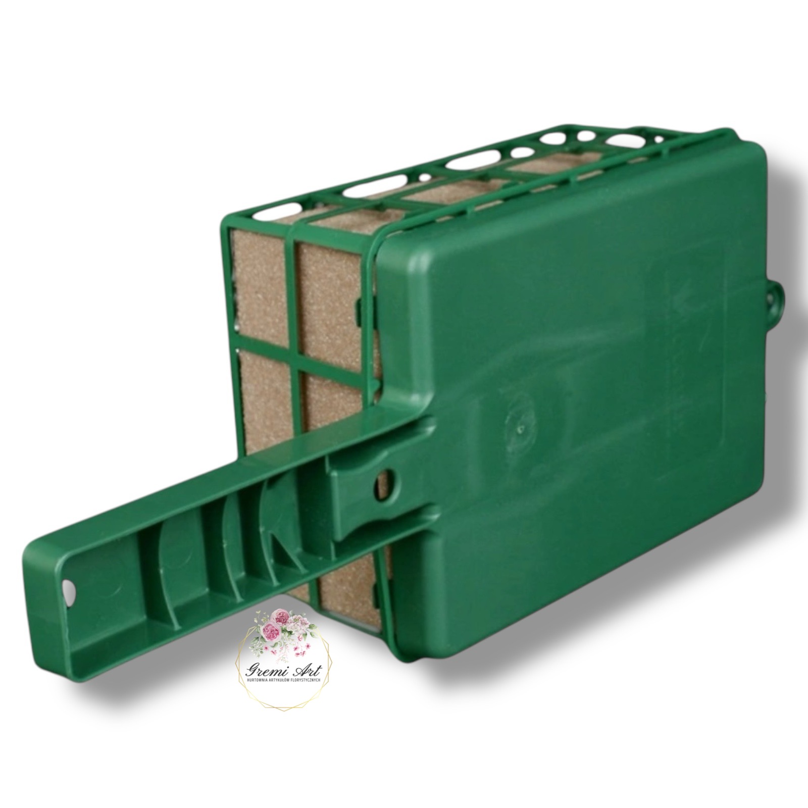 Idealny do tworzenia kompozycji kwiatowych, które wymagają przenoszenia – uchwyt (rączka) jest zespolona z podstawą, co zapewnia stabilność kompozycji. Gąbka wyprodukowana przez polskiego producenta – firmę VICTORIA