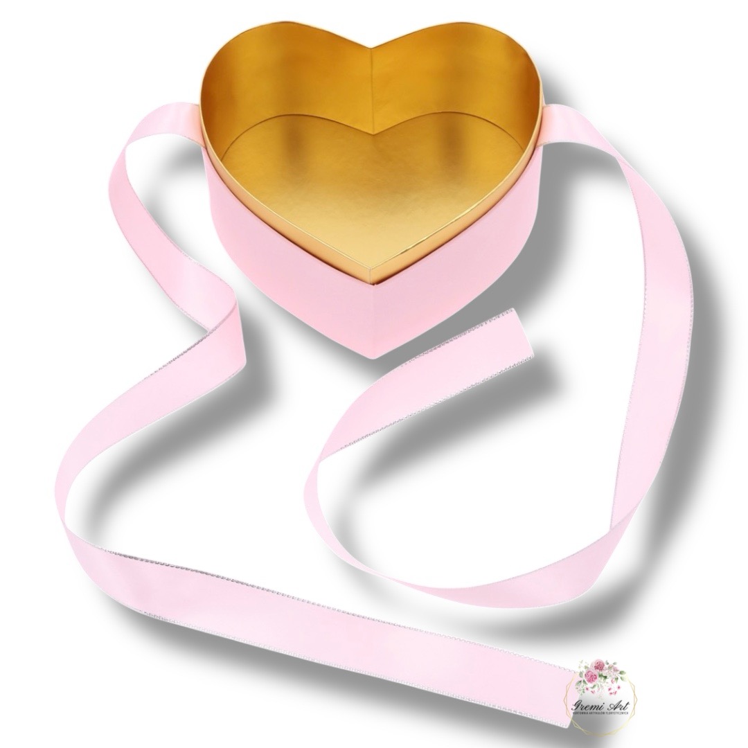 Boki pudełka charakteryzują się gładką, elegancką fakturą, a ich różowy kolor doskonale harmonizuje z luksusowym, złotym wnętrzem, nadającym boxowi prestiżowego wyglądu. Po bokach zamocowano ozdobną satynową wstążkę, którą możesz zawiązać wedle własnego pomysłu i uznania, dodając osobistego akcentu. To idealne rozwiązanie na prezenty, słodycze i kwiaty na każdą okazję, szczególnie Walentynki, Dzień Matki, urodziny czy rocznice.