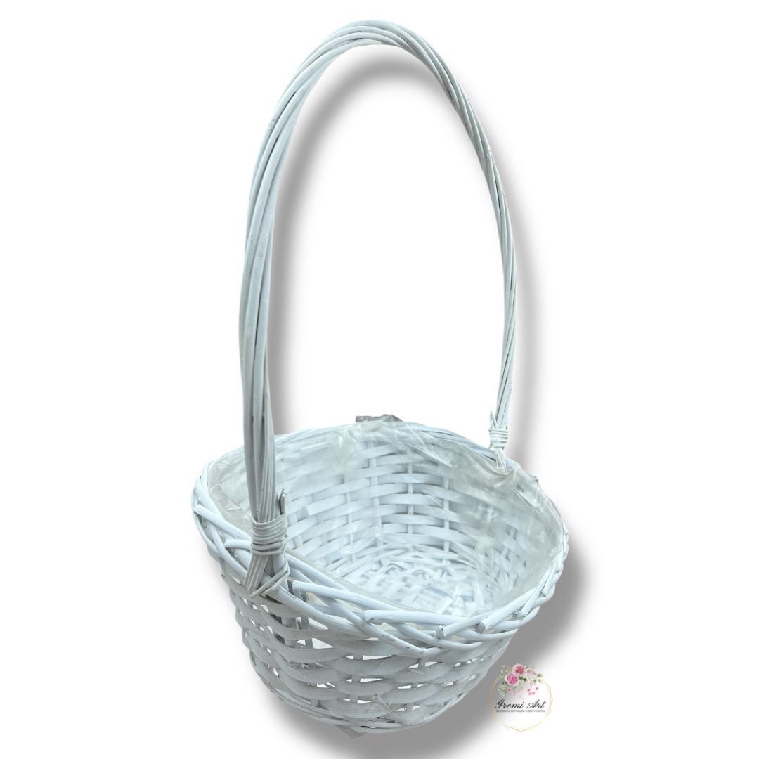 Biały Kosz Wiklinowy Delikatesowy 48 cm – Duży i Pojemny Kosz na Kwiaty i Zestawy Upominkowe