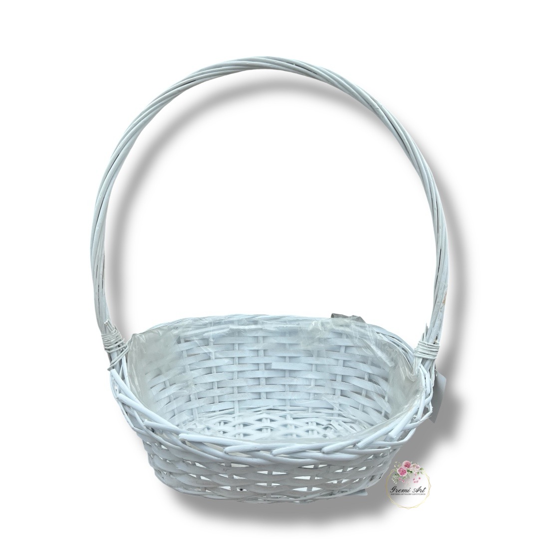 Dane techniczne: Biały kosz wiklinowy delikatesowy 48 cm
