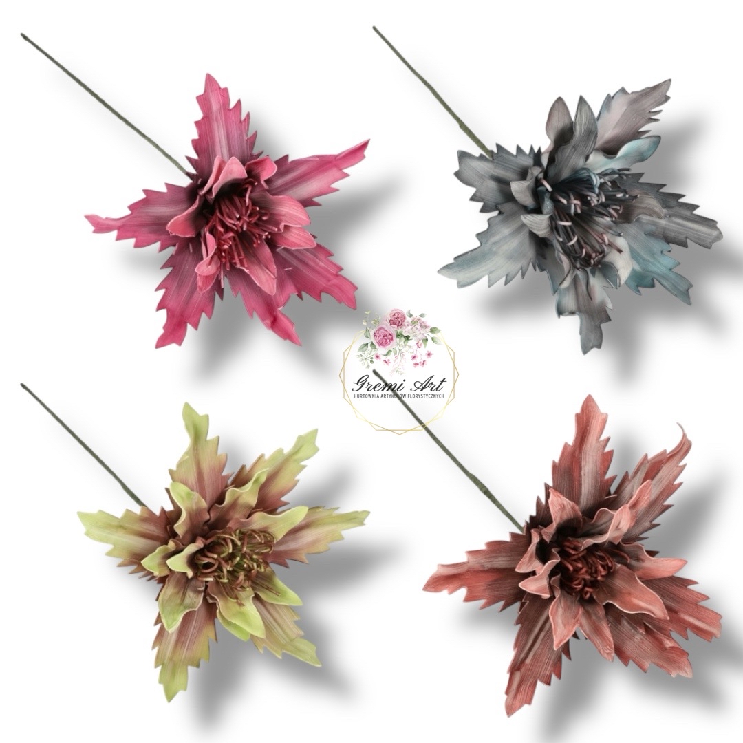 29,00 zł - detalPiękny, duży kwiat piankowy jakości PREMIUM. Jest idealną dekoracją zarówno sam w sobie, jak i element wszelkich kompozycji kwiatowych. Dzięki drucianej gałązce jest bardzo plastyczny i z łatwością można nadać mu pożądany kształt. Z pewnością upiększy każdą florystyczną aranżację niezależnie od sezonu. Można stworzyć z nich wiele ciekawych kompozycji, takich jak stroiki.