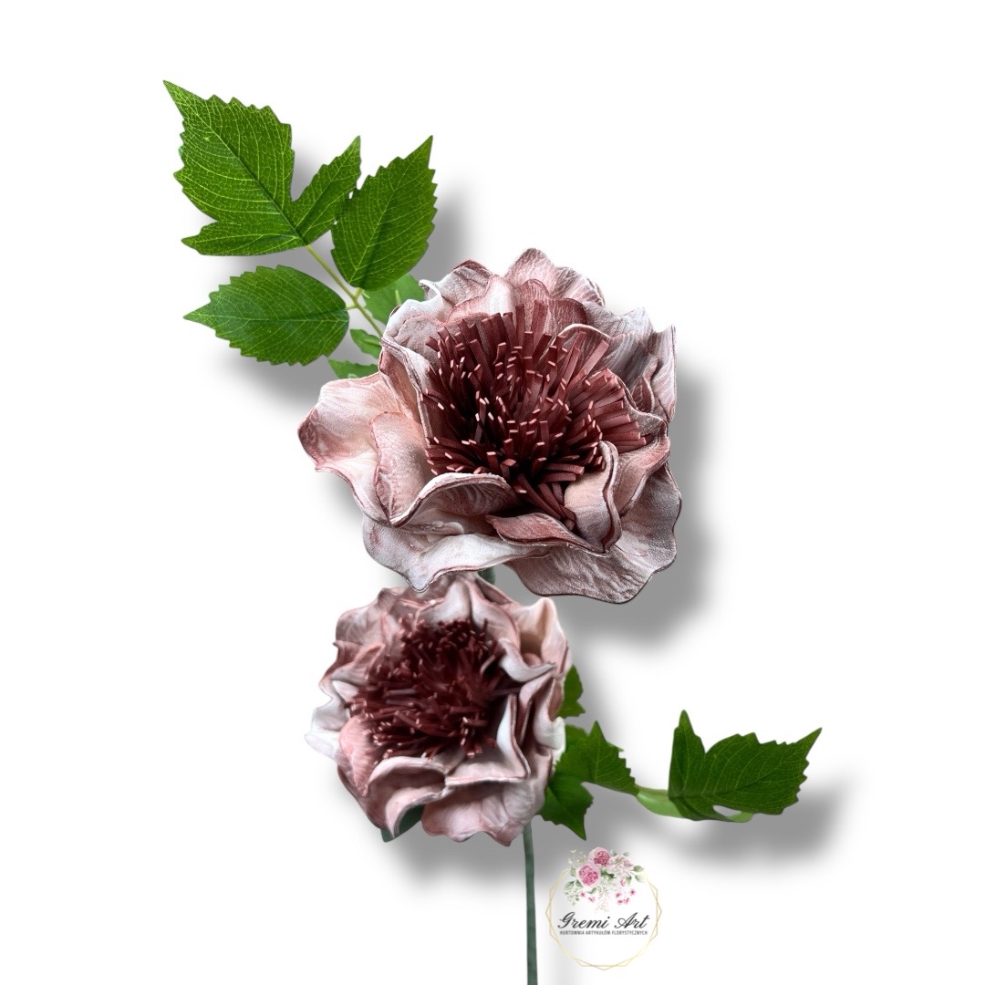 Piękny, duży kwiat piankowy jakości PREMIUM. Na jednej łodydze znajdują się dwa okazałe kwiaty. Jest idealną dekoracją zarówno sam w sobie, jak i element wszelkich kompozycji kwiatowych. Dzięki drucianej gałązce jest bardzo plastyczny i z łatwością można nadać mu pożądany kształt. Z pewnością upiększy każdą florystyczną aranżację niezależnie od sezonu. Można stworzyć z nich wiele ciekawych kompozycji, takich jak stroiki.