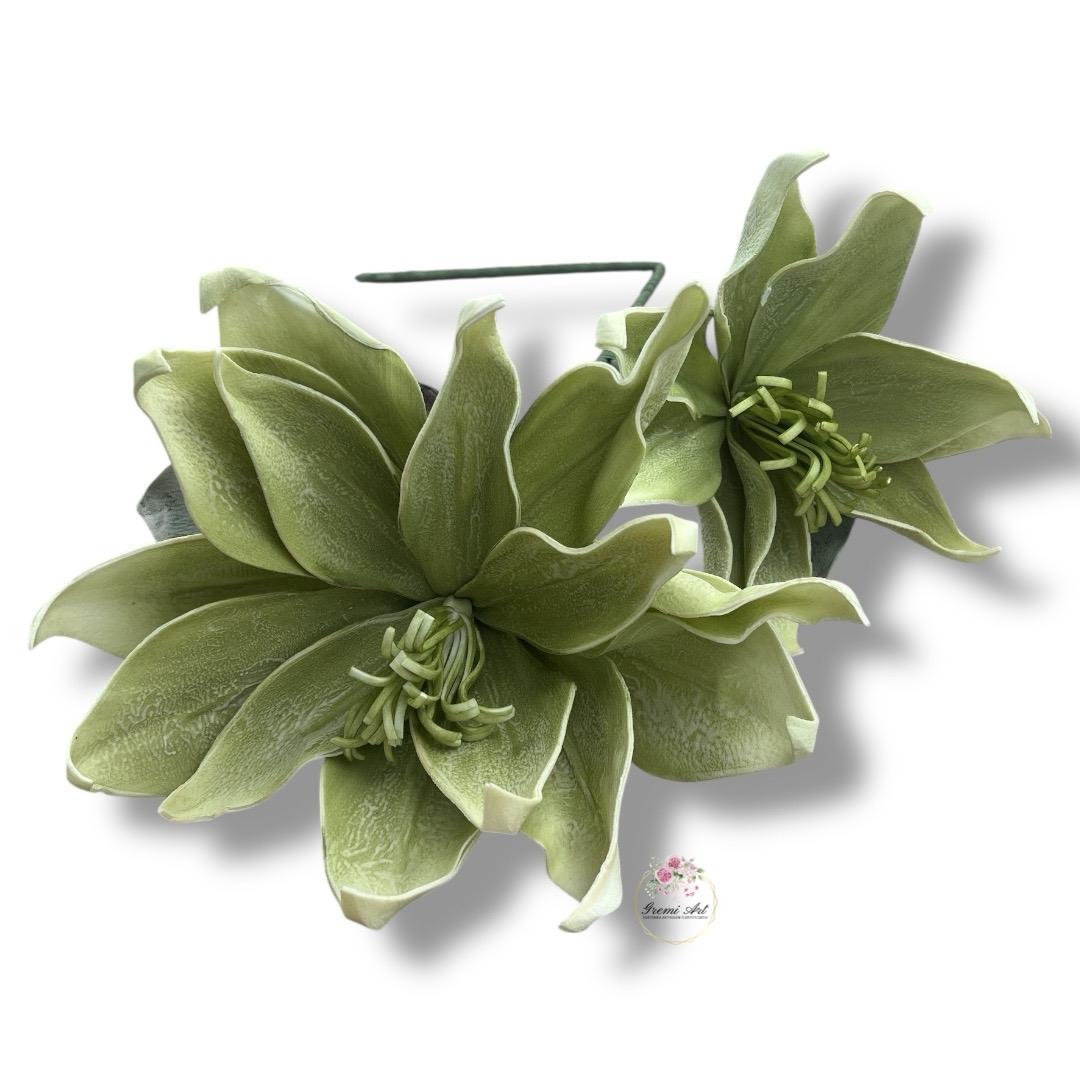Piękny, duży kwiat piankowy jakości PREMIUM. Na jednej łodydze znajdują się dwa okazałe kwiaty. Jest idealną dekoracją zarówno sam w sobie, jak i element wszelkich kompozycji kwiatowych. Dzięki drucianej gałązce jest bardzo plastyczny i z łatwością można nadać mu pożądany kształt. Z pewnością upiększy każdą florystyczną aranżację niezależnie od sezonu. Można stworzyć z nich wiele ciekawych kompozycji, takich jak stroiki.