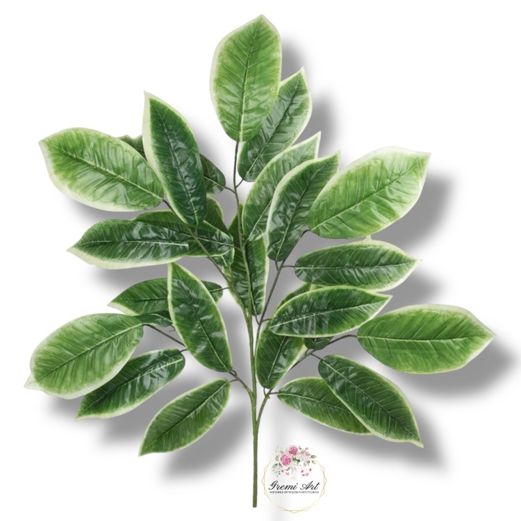 Liście Mango to doskonały dodatek do dekoracji. Świetnie sprawdzi się jako wypełniacz do kompozycji kwiatowych. Elastyczna łodyga pozwoli idealnie dopasować gałązkę do potrzeb danej kompozycji. Odcień zieleni realistycznie przechodzi od ciemnego, do jasnego sprawiając, że taka dekoracja wiernie odtwarza żywą roślinę. Gęstość rozłożenia liści pozwala osiągnąć świetny efekt wizualny. Jedna gałązka posiada 25 liści.