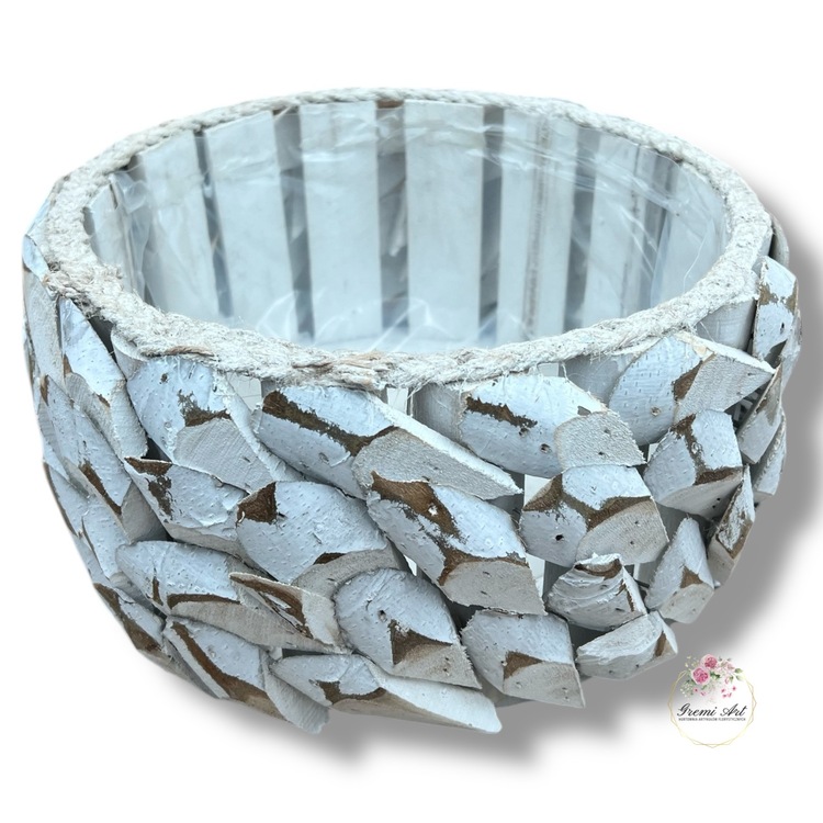 28,00 zł - detalOsłonka z drewna do własnej aranżacji. Piękna baza pod kompozycje, stroiki z kwiatów sztucznych, a także żywych. Wyłożona w środku folią zabezpieczającą.