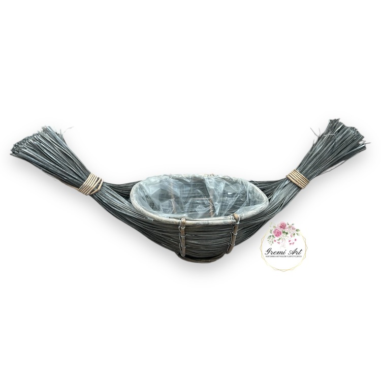 Kosz/osłonka do własnej aranżacji. Piękna baza pod kompozycje, stroiki z kwiatów sztucznych, a także żywych. Wyłożony w środku folią zabezpieczającą.