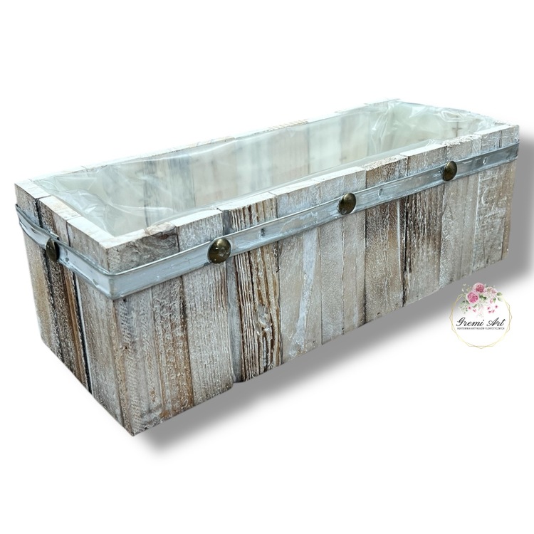 25,00 zł - detalDrewniana osłonka do własnej aranżacji. Piękna baza pod kompozycje, stroiki z kwiatów sztucznych, a także żywych. Wyłożona w środku folią zabezpieczającą. Produkty wykonane z drzewa lub sklejki mogą posiadać sęki, rysy lub pęknięcia i jest to efekt naturalny. Nie stanowi to podstawy do reklamacji.