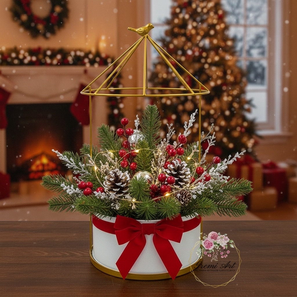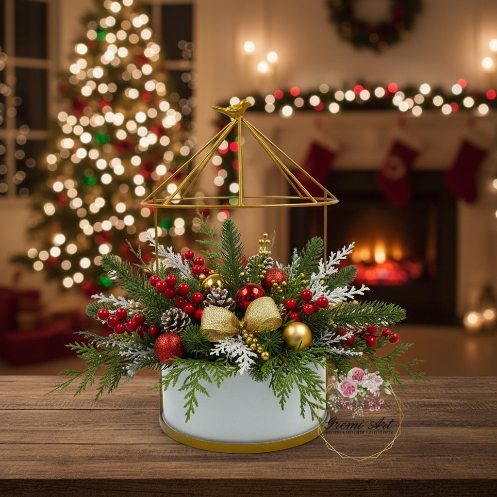 31,00 zł - detalStylowa osłonka metalowa do własnej aranżacji. Wyjątkowa baza pod stroik lub aranżację florystyczną, wykonana w całości z metalu. Idealna do tworzenia świątecznych kompozycji, ozdób bożonarodzeniowych, dekoracji stołu, komody czy witryny. W dolnej części znajduje się pojemnik na gąbkę florystyczną lub możliwość zalania betonem, co pozwala na stabilne osadzenie dekoracji, gałązek, świec, figurek czy roślin.