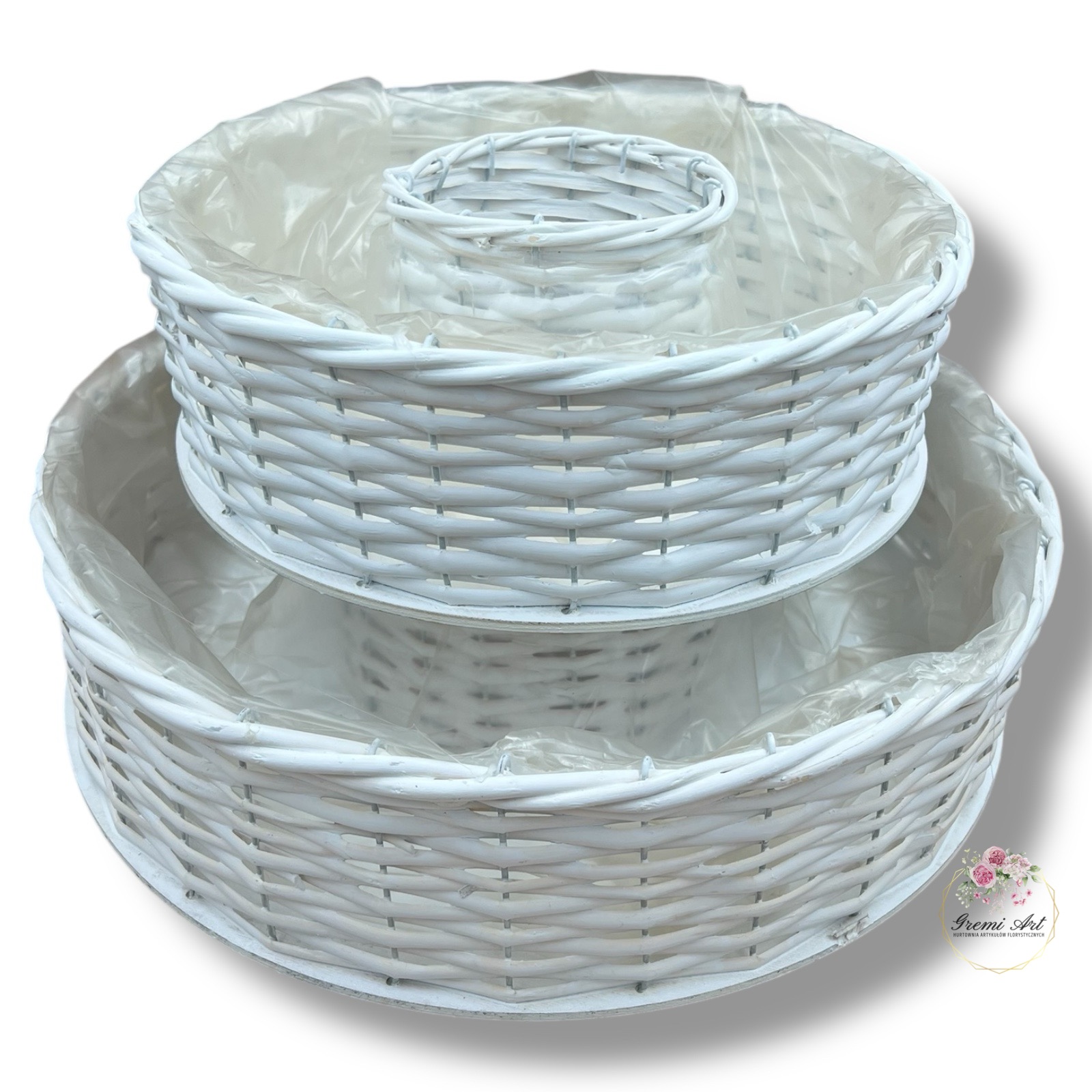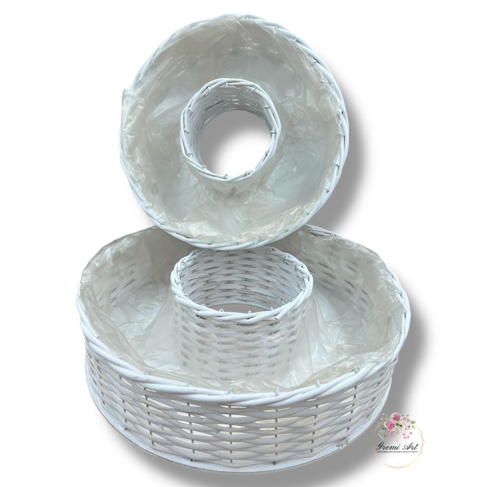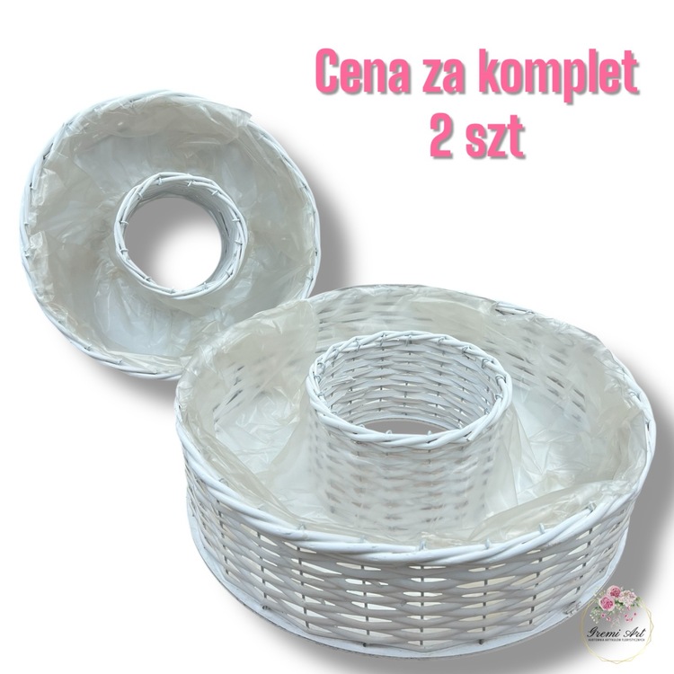 65,00 zł - detalOsłonki z wikliny do własnej aranżacji. Piękna baza pod kompozycje, stroiki z kwiatów sztucznych, a także żywych. Wyłożone w środku folią zabezpieczającą. Sprzedawane w komplecie. Cena za 2 szt.