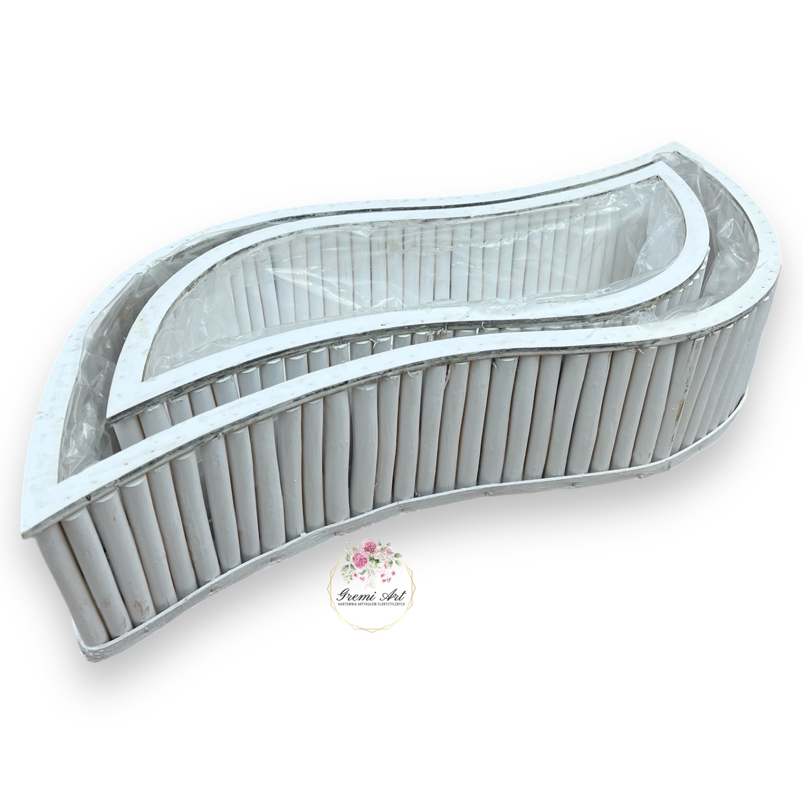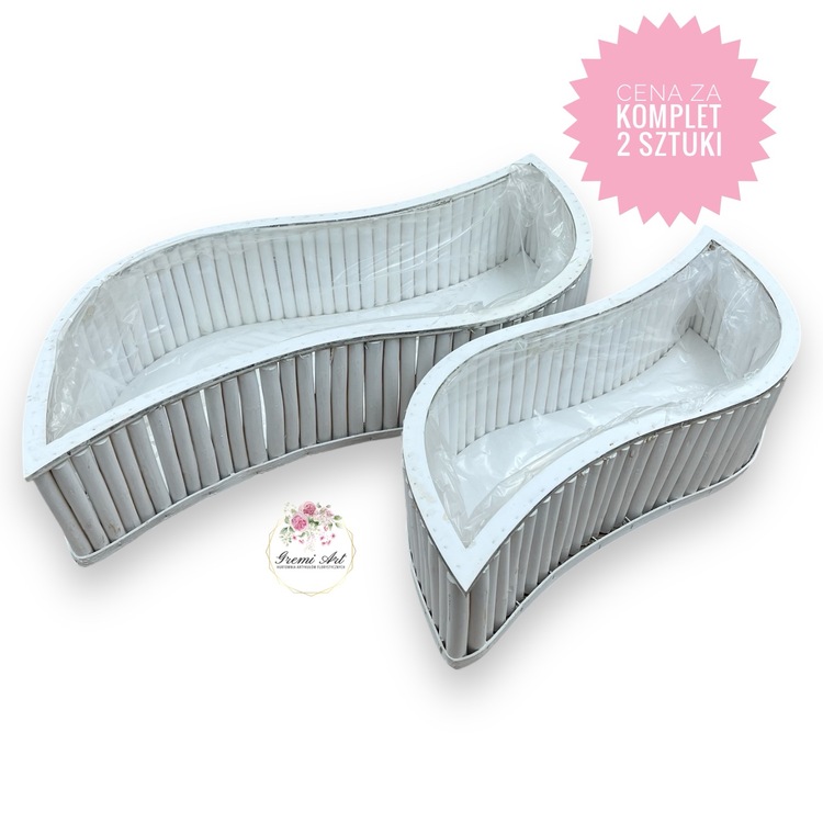 65,00 zł - detalOsłonki do własnej aranżacji. Piękna baza pod kompozycje, stroiki z kwiatów sztucznych, a także żywych. Wyłożone w środku folią zabezpieczającą. Sprzedawane w komplecie. Podana cena dotyczy 2 szt.