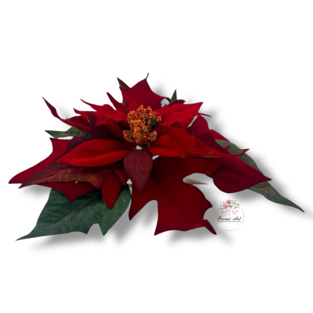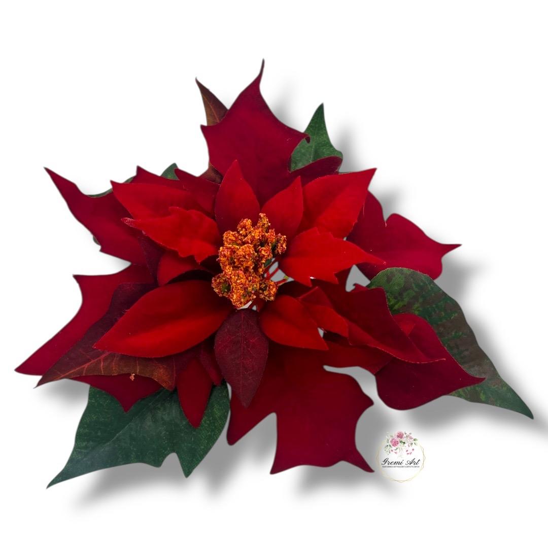 7,00 zł - detalJakość premium! Poinsecja pomimo, że jest sztuczna zachwyci swoim urokiem niejednego z domowników. Fantastycznie prezentuje się jako ozdoba do stroików bożonarodzeniowych. Sprawdzi się jako kwiaty do kompozycji na stół wigilijny czy dekoracja do girland. Płatki gwiazdy betlejemskiej wykonane są warstwowo ze sztywnego, velvetowego materiału, dzięki czemu kwiat do złudzenia przypomina żywą roślinę.