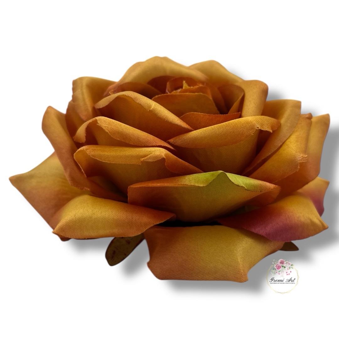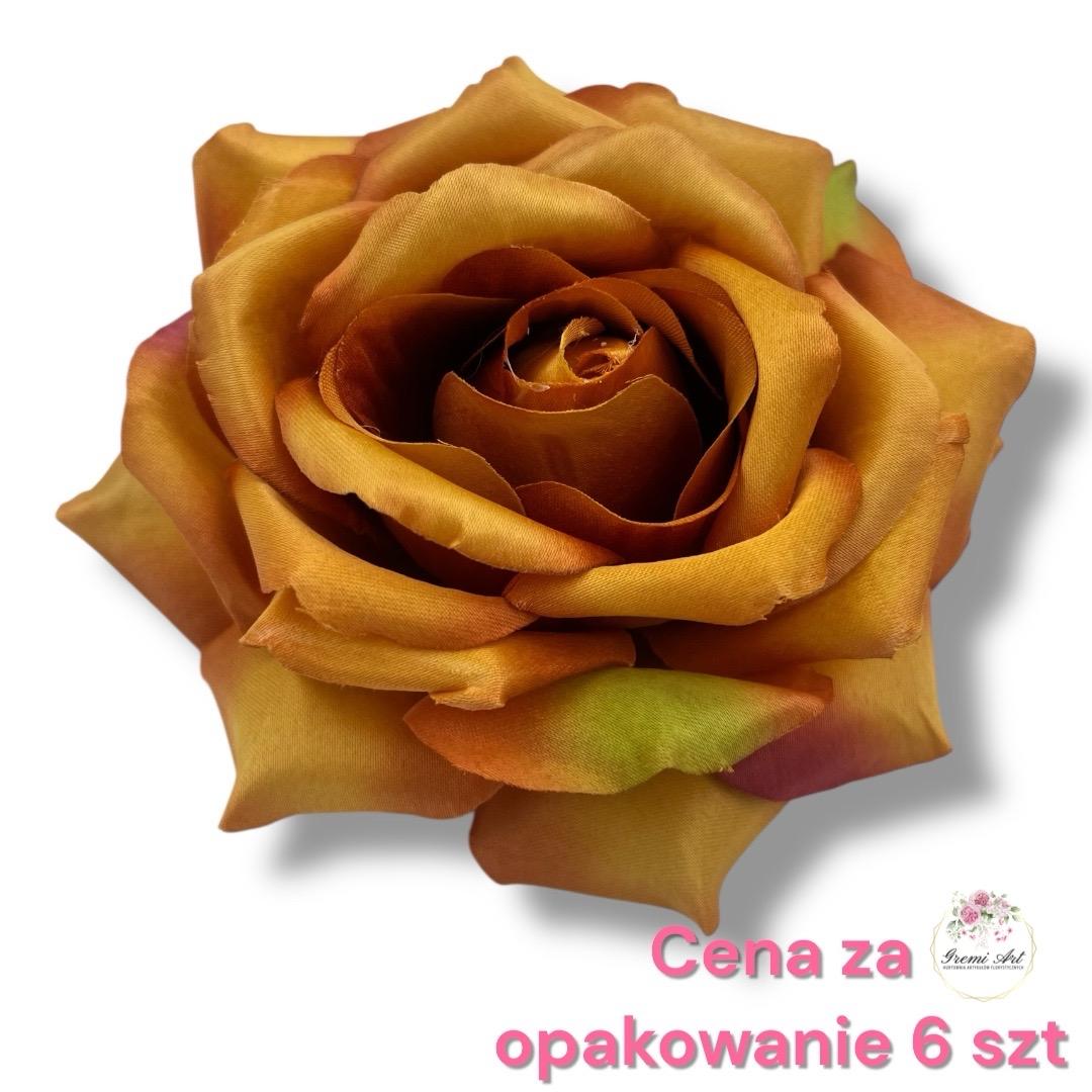 Cena za opakowanie 6 szt! Piękna, duża główka wyrobowa róży o satynowym wykończeniu bardzo dobrej jakości. Duża ilość warstw płatków i sztywny materiał powoduje, że główka do złudzenia przypomina prawdziwy kwiat i przetrwa długie lata w niezmienionej postaci. Można stworzyć z nich wiele ciekawych kompozycji, takich jak stroiki, wianki czy bukiety. Odcień na zdjęciach może się nieco różnić w zależności od ustawień monitora.