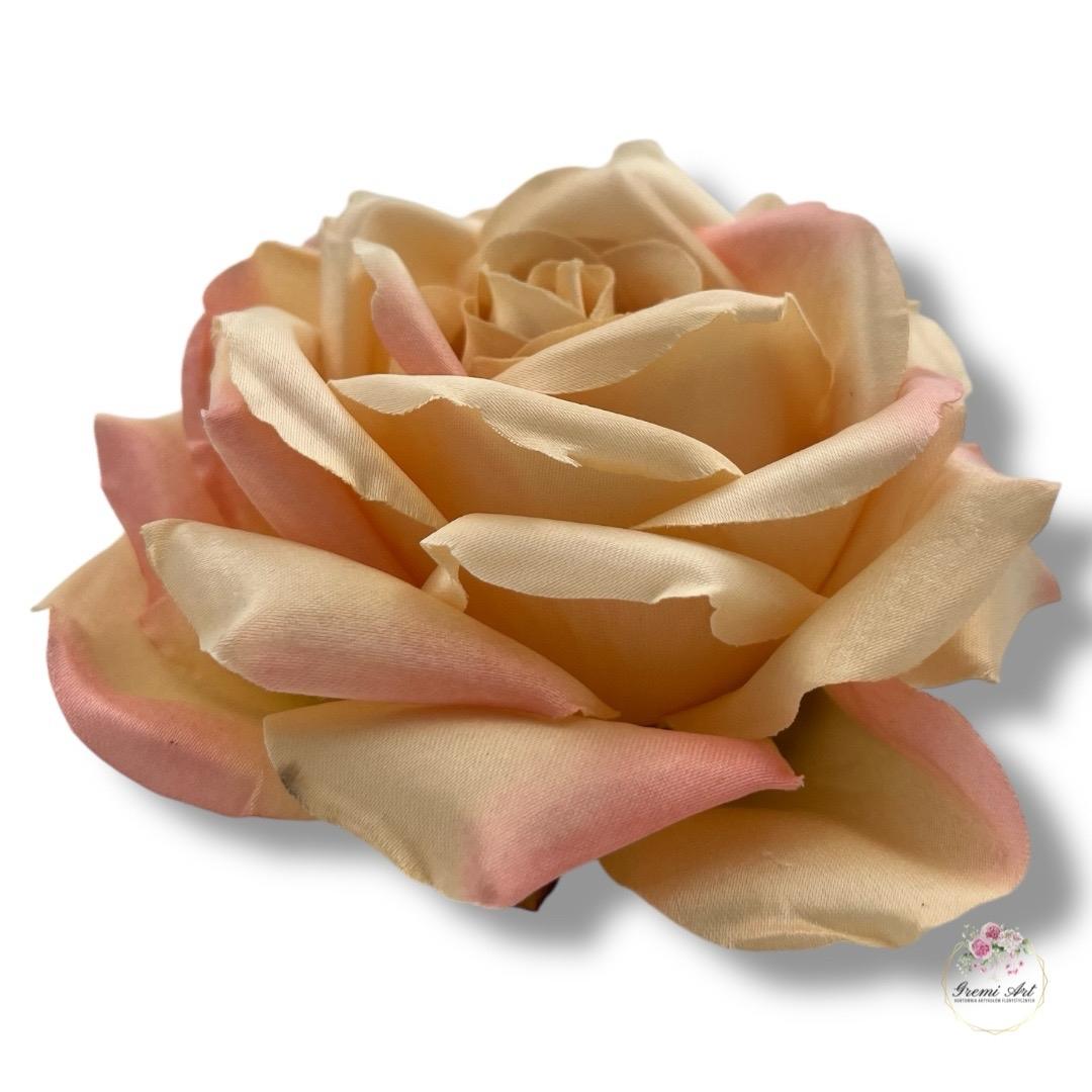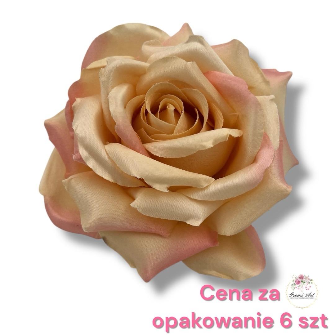 Cena za opakowanie 6 szt! Piękna, duża główka wyrobowa róży o satynowym wykończeniu bardzo dobrej jakości. Duża ilość warstw płatków i sztywny materiał powoduje, że główka do złudzenia przypomina prawdziwy kwiat i przetrwa długie lata w niezmienionej postaci. Można stworzyć z nich wiele ciekawych kompozycji, takich jak stroiki, wianki czy bukiety. Odcień na zdjęciach może się nieco różnić w zależności od ustawień monitora.