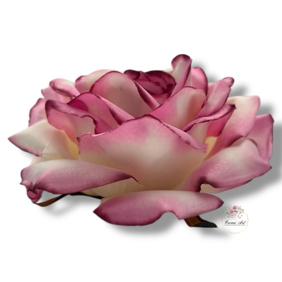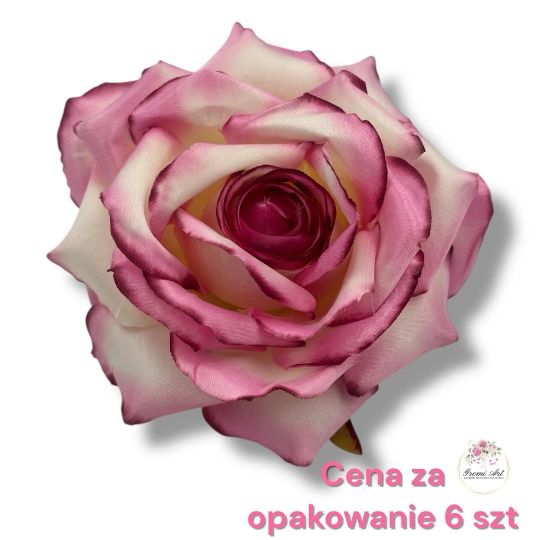 Cena za opakowanie 6 szt! Piękna, duża główka wyrobowa róży o satynowym wykończeniu bardzo dobrej jakości. Duża ilość warstw płatków i sztywny materiał powoduje, że główka do złudzenia przypomina prawdziwy kwiat i przetrwa długie lata w niezmienionej postaci. Można stworzyć z nich wiele ciekawych kompozycji, takich jak stroiki, wianki czy bukiety. Odcień na zdjęciach może się nieco różnić w zależności od ustawień monitora.
