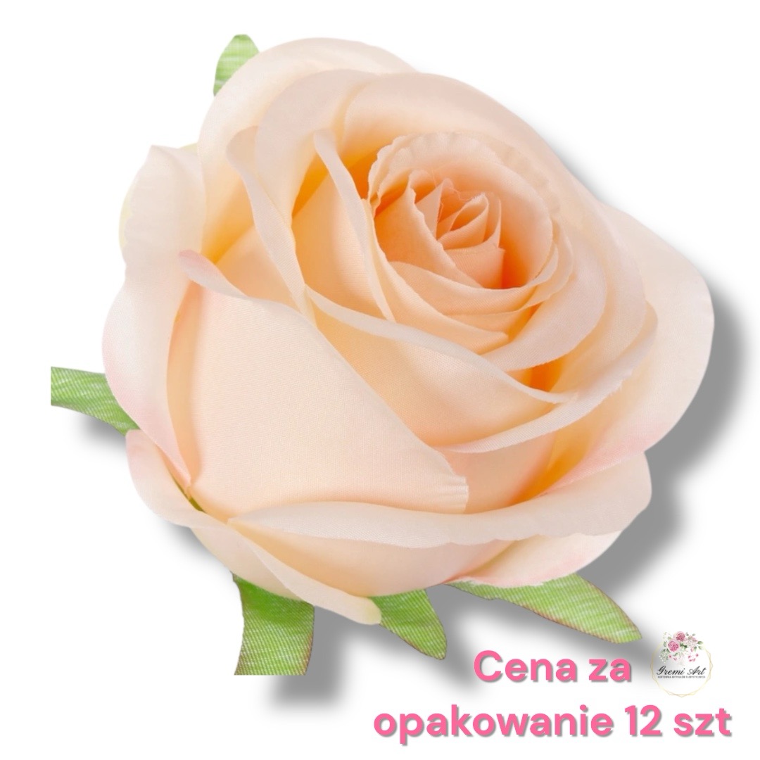 Cena za opakowanie 12 szt! Piękna, duża główka wyrobowa róży o satynowym wykończeniu bardzo dobrej jakości. Duża ilość warstw płatków i sztywny materiał powoduje, że główka do złudzenia przypomina prawdziwy kwiat i przetrwa długie lata w niezmienionej postaci.