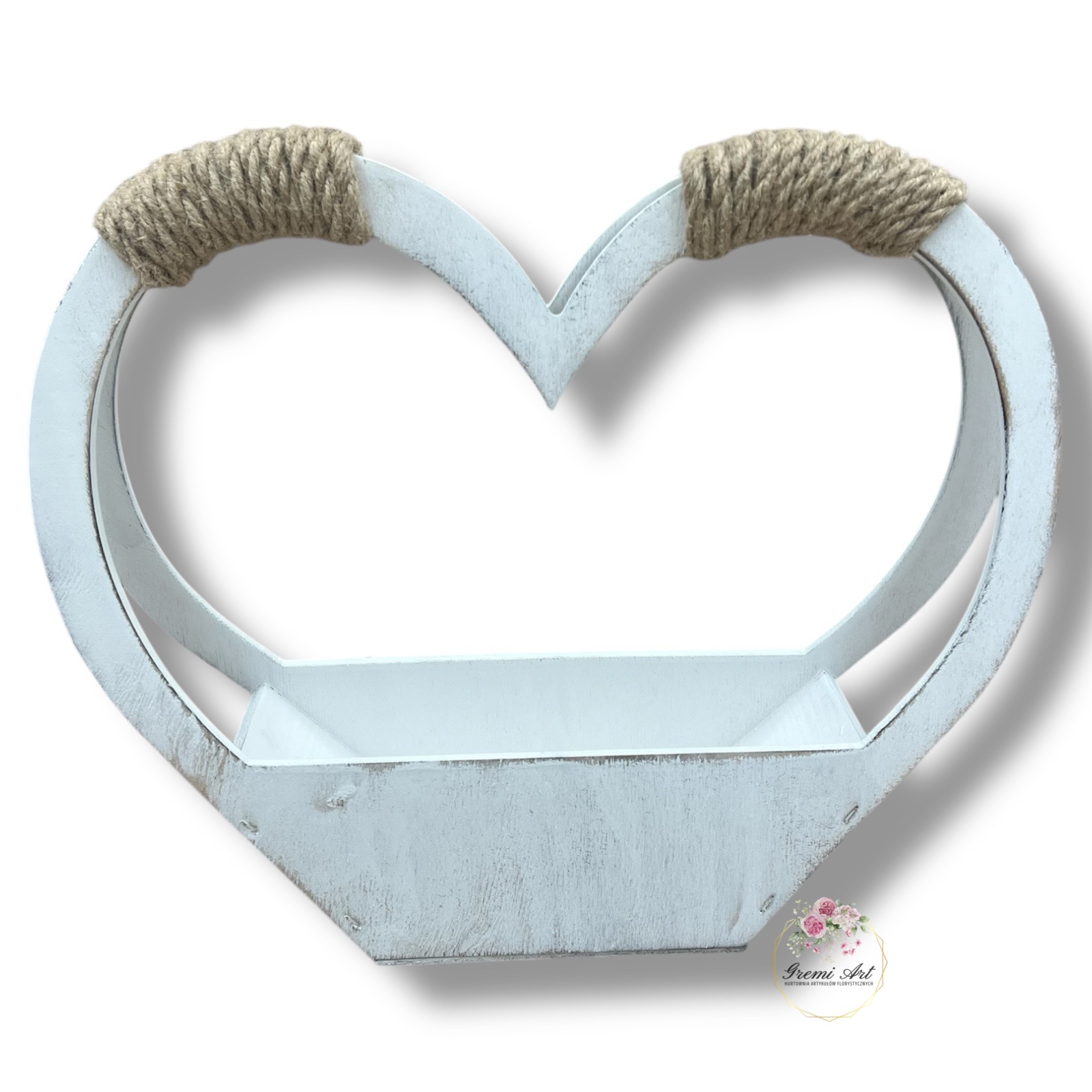41,00 zł - detalDrewniany kosz w kształcie serca do własnej aranżacji, ozdobiony sznurkiem jutowym. Piękna baza pod kompozycje, stroiki z kwiatów sztucznych, a także żywych. Nie wszystkie produkty drewniane są szlifowane aby zachowały wygląd naturalny. Celowe przecieranie, postarzanie drewna dodaje mu uroku. Produkty wykonane z drzewa lub sklejki mogą posiadać sęki, rysy lub pęknięcia.