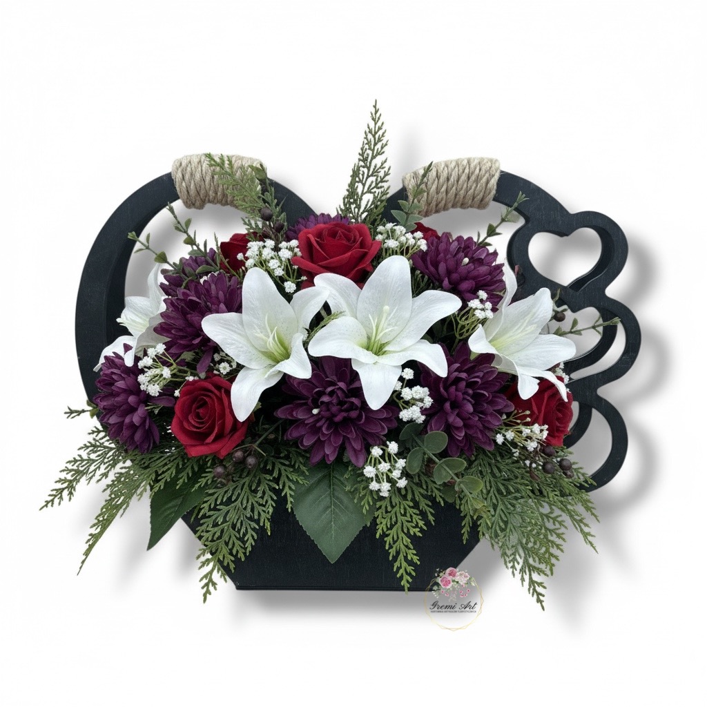 - Dekoracja nagrobna: Wymowny kształt z dodatkiem serduszek i trwałość materiału sprawiają, że kosz doskonale sprawdzi się jako piękna i godna ozdoba na cmentarzu, symbolizująca pamięć o bliskich.