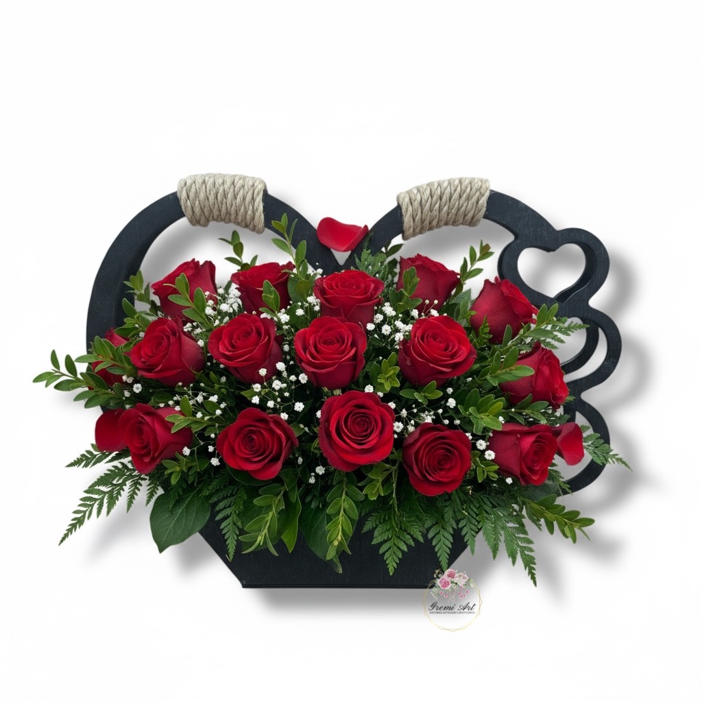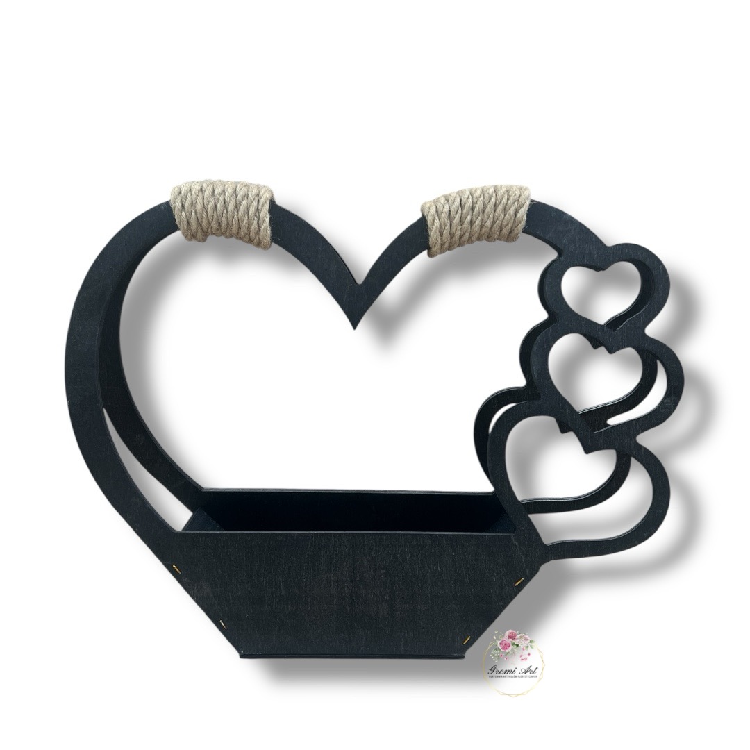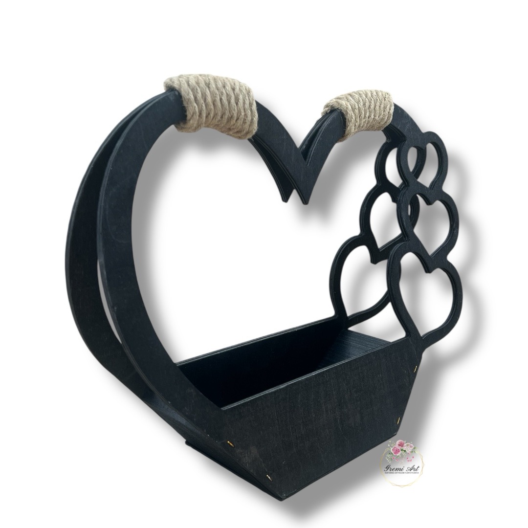 Odkryj drewniany kosz z serduszkami, który łączy funkcjonalność z wyjątkowym, rustykalnym designem. Ten stylowy dodatek, wykonany ze sklejki i drzewa, wykończony w kolorze czarnym, stanowi idealną oprawę dla kompozycji florystycznych. Dzięki swoim wymiarom i stabilnej konstrukcji, doskonale sprawdzi się jako piękna ozdoba na różne okazje, a także jako wymowna dekoracja nagrobna.