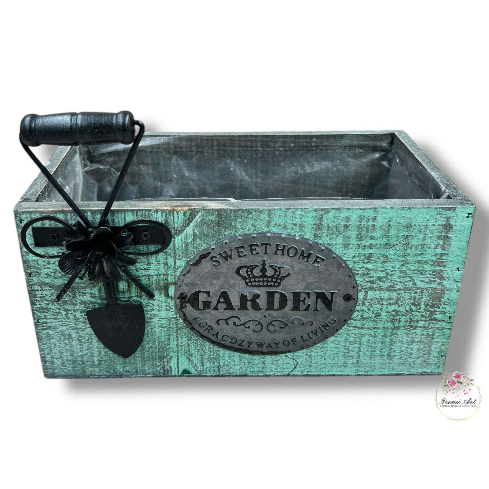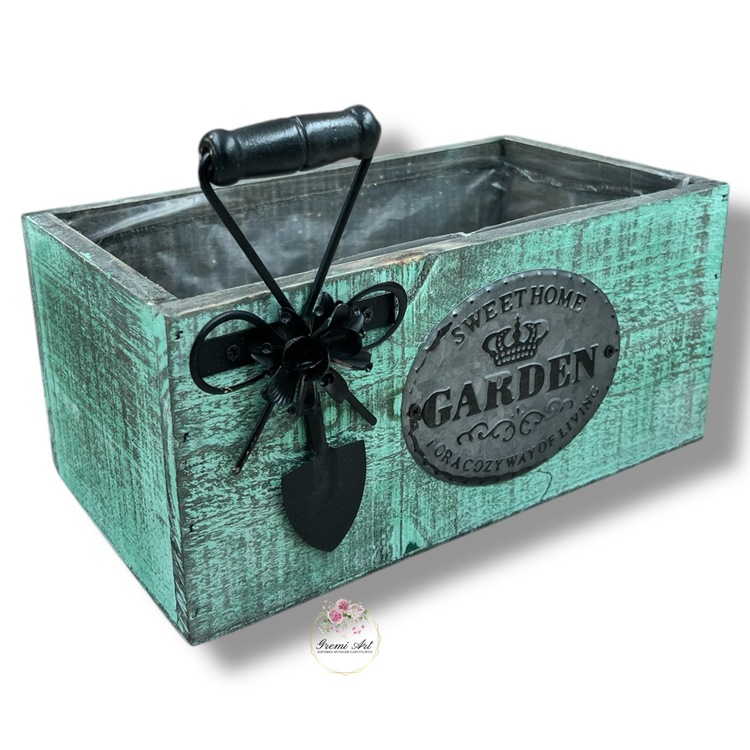 37,00 zł - detalDrewniana skrzynka do własnej aranżacji z ozdobnymi elementami metalowymi. Piękna baza pod kompozycje, stroiki z kwiatów sztucznych, a także żywych. Celowe przecieranie, postarzanie drewna dodaje mu uroku. Produkty wykonane z drzewa lub sklejki mogą posiadać sęki, rysy lub pęknięcia. Wyłożona w środku folią zabezpieczającą.