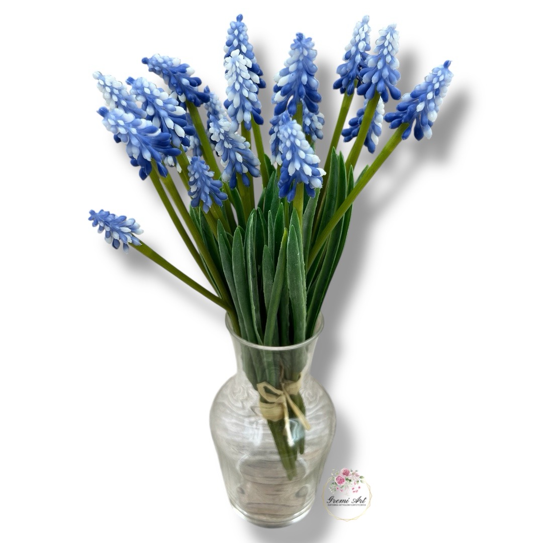 Szafirek gumowany to kwiat, wykonany z wysokiej jakości materiałów, który do złudzenia przypomina żywy kwiat. Z pewnością doda słońca każdej wiosennej aranżacji florystycznej. Doskonale sprawdzą się jako dodatek do wiosennych dekoracji. Naturalne kolory kwiatów przepięknie prezentują się zarówno w pojedynczej barwie, jak i w miksie kolorystycznym. Szafirek idealnie prezentuje się umieszczony w donicy lub koszyku z innymi wiosennymi kwiatami, imitując słoneczny ogród.