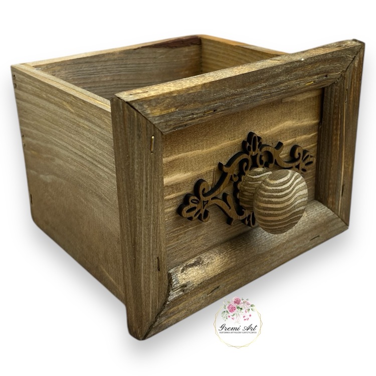 29,00 zł - detalDrewniana skrzynka w kształcie szufladki. Piękna baza pod kompozycje, stroiki z kwiatów sztucznych, a także żywych. Nie wszystkie produkty drewniane są szlifowane aby zachowały wygląd naturalny. Celowe przecieranie, postarzanie drewna dodaje mu uroku, jest to celowy zabieg. Produkty wykonane z drzewa lub sklejki mogą posiadać sęki, rysy lub pęknięcia co jest efektem naturalnym. Nie stanowi to podstawy do reklamacji.