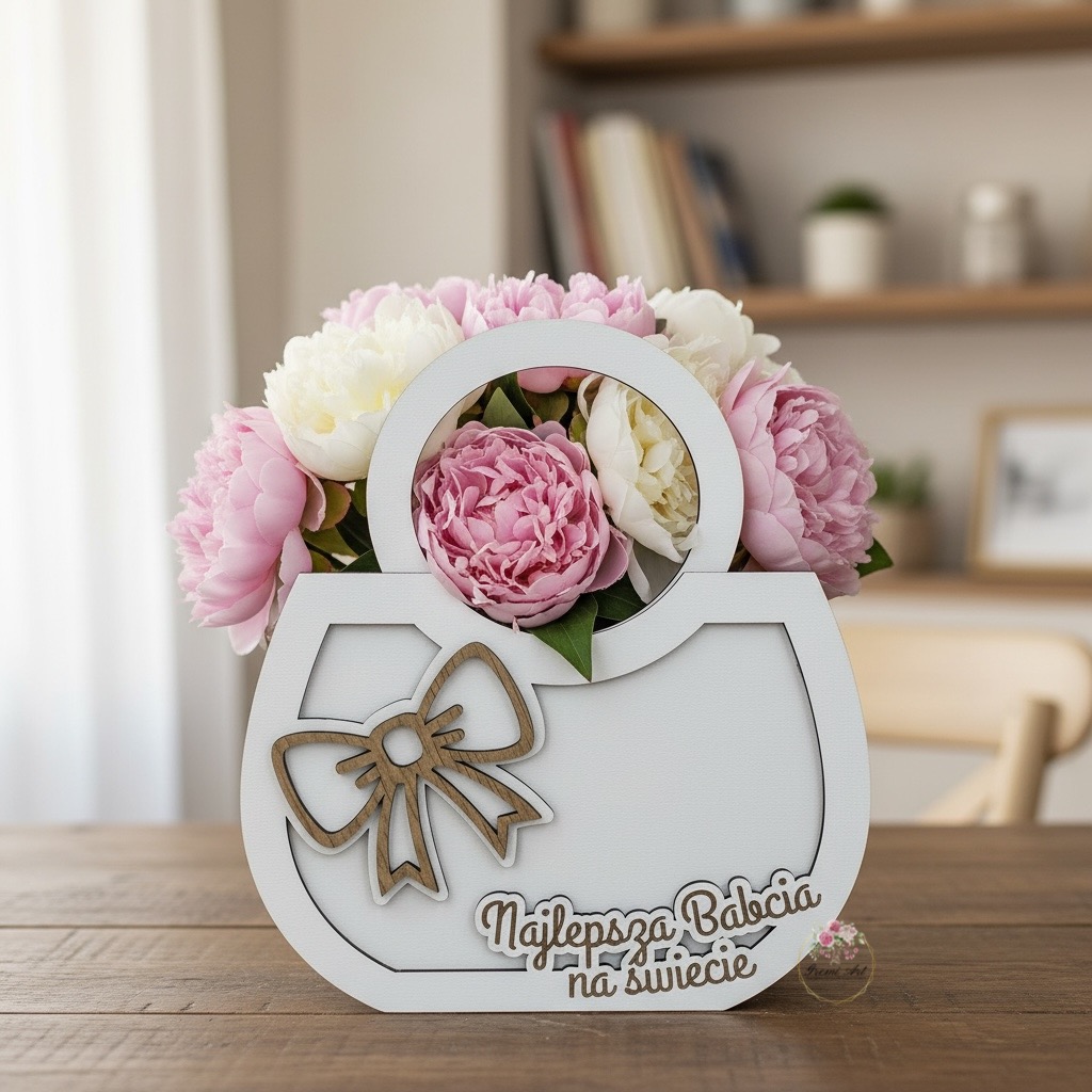 Będzie świetną oprawą dla kwiatów, słodyczy lub innych delikatesów, a wymowny napis sprawi każdej Babci wielką radość.
