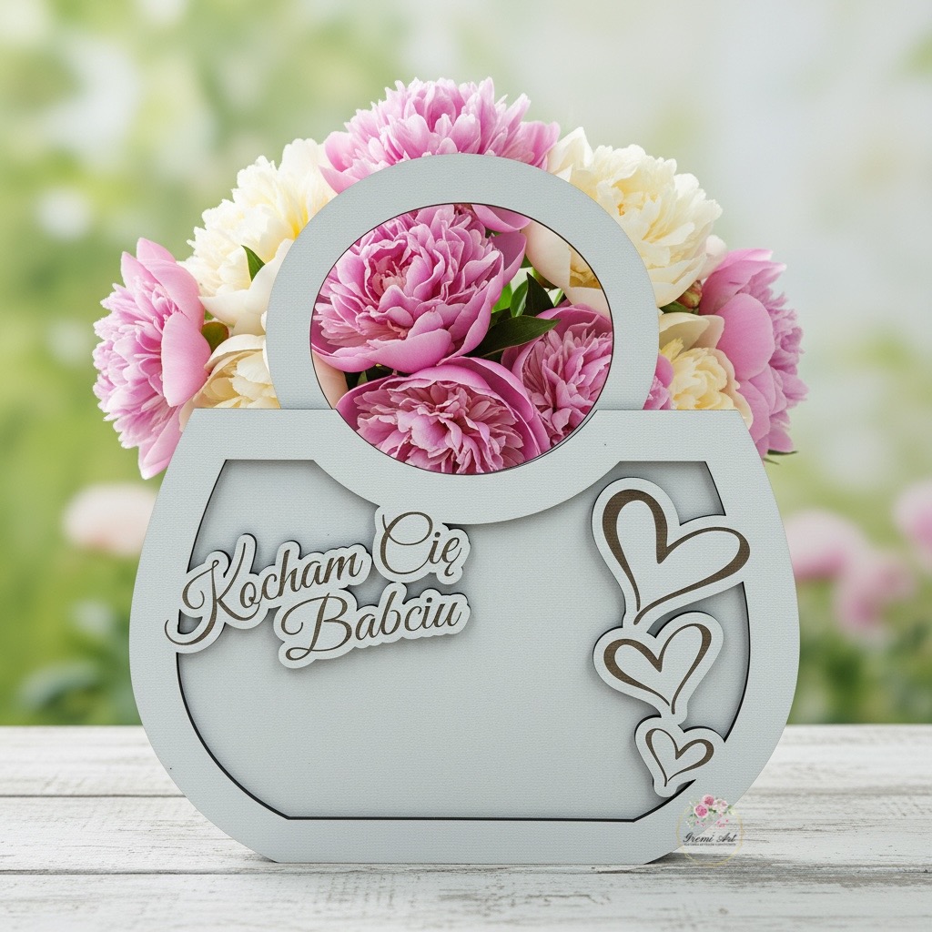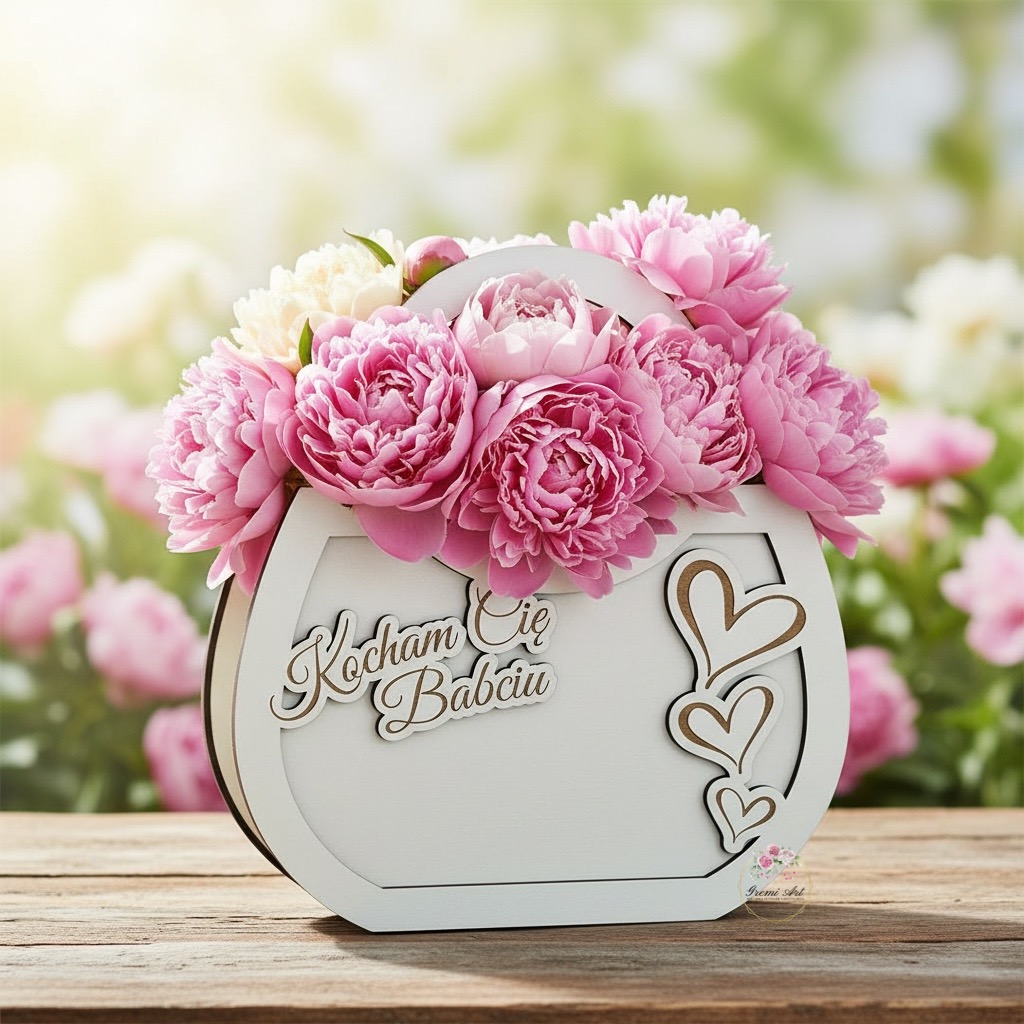 Będzie świetną oprawą dla kwiatów, słodyczy lub innych delikatesów, a wymowny napis sprawi każdej Babci wielką radość.