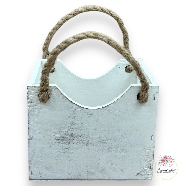 Drewniana osłonka w kształcie torebki z ozdobnym sznurkiem do własnej aranżacji. Piękna baza pod kompozycje, stroiki z kwiatów sztucznych, a także żywych. Nie wszystkie produkty drewniane są szlifowane aby zachowały wygląd naturalny. Celowe przecieranie, postarzanie drewna dodaje mu uroku, jest to celowy zabieg. Produkty wykonane z drzewa lub sklejki mogą posiadać sęki, rysy lub pęknięcia i jest to efekt naturalnego materiału. Nie stanowi to podstawy do reklamacji.