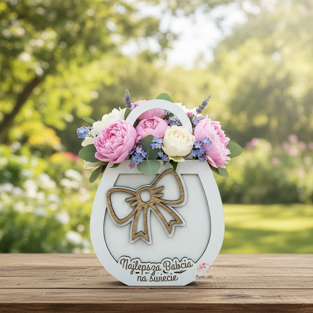 Będzie świetną oprawą dla kwiatów, słodyczy lub innych delikatesów, a wymowny napis sprawi każdej Babci wielką radość.