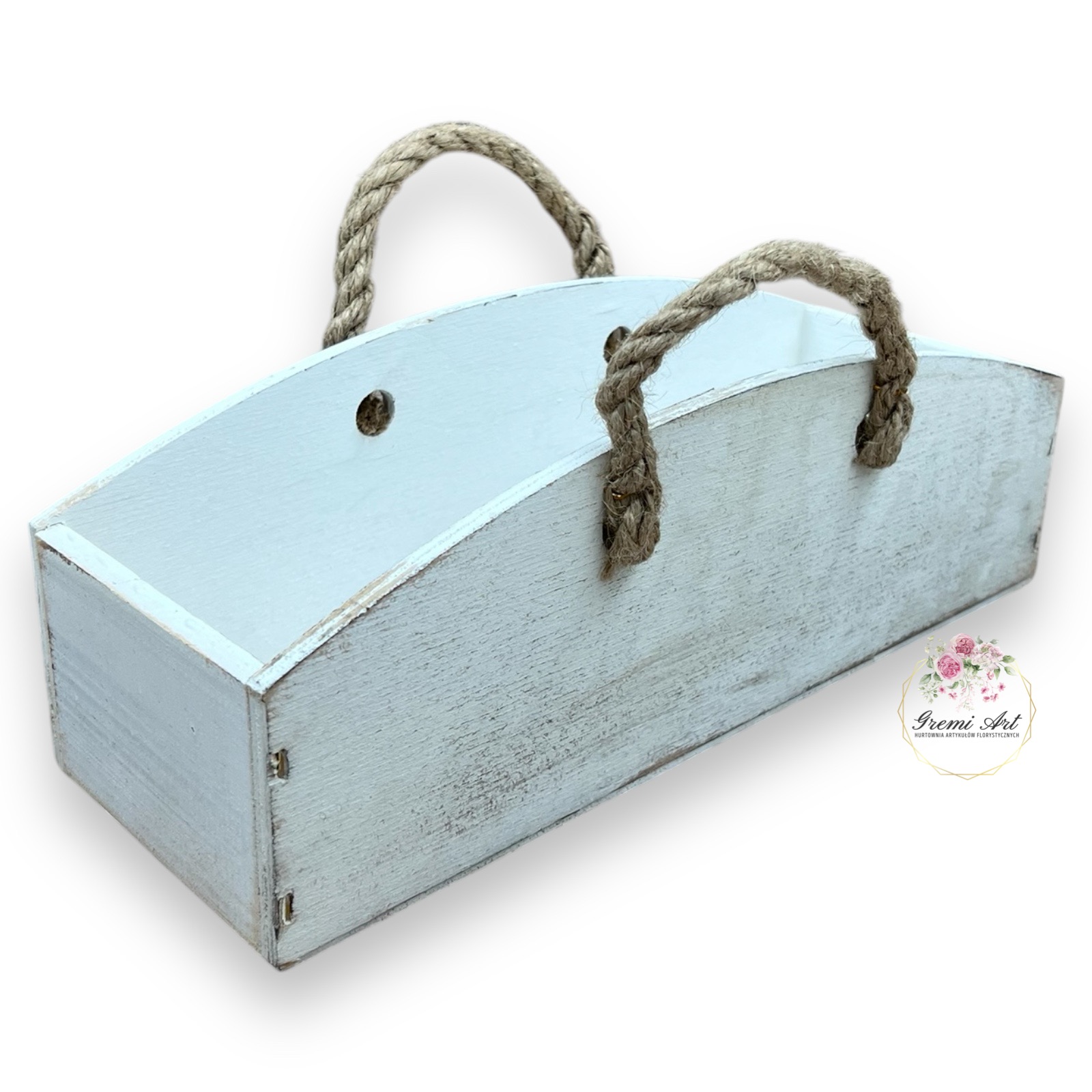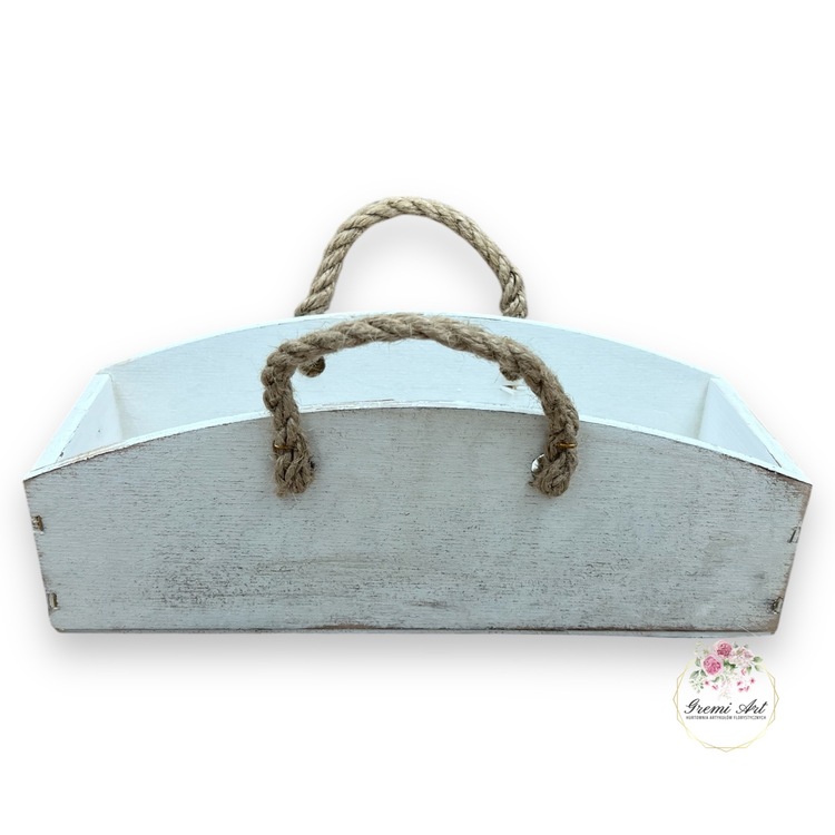 25,00 zł - detalDrewniana osłonka w kształcie torebki z ozdobnym sznurkiem do własnej aranżacji. Piękna baza pod kompozycje, stroiki z kwiatów sztucznych, a także żywych. Nie wszystkie produkty drewniane są szlifowane aby zachowały wygląd naturalny. Celowe przecieranie, postarzanie drewna dodaje mu uroku, jest to celowy zabieg. Produkty wykonane z drzewa lub sklejki mogą posiadać sęki, rysy lub pęknięcia i jest to efekt naturalnego materiału. Nie stanowi to podstawy do reklamacji.