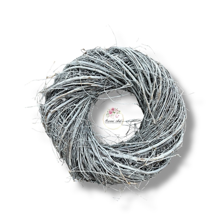 Piękny wianek z faszyny ozdobiony mchem do własnej aranżacji. Idealna baza pod kompozycje, stroiki z kwiatów sztucznych, a także żywych.