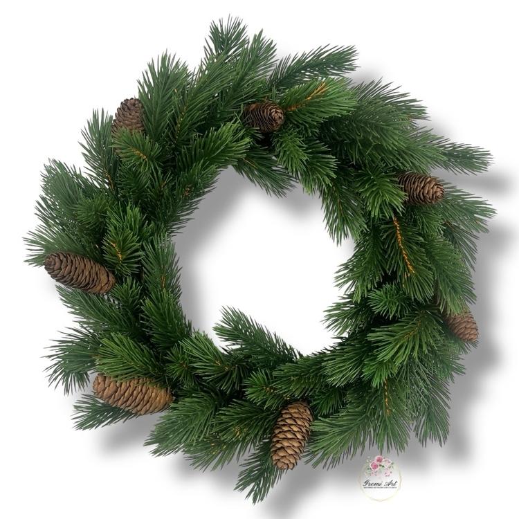 51,00 zł - detalBardzo dobrej jakości! Świerkowy wianek ze sztucznych gałązek, wykonany z bardzo dobrej jakości tworzywa PE z dbałością o każdy szczegół, dzięki czemu wygląda bardzo realistycznie.