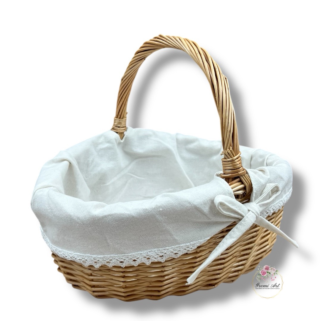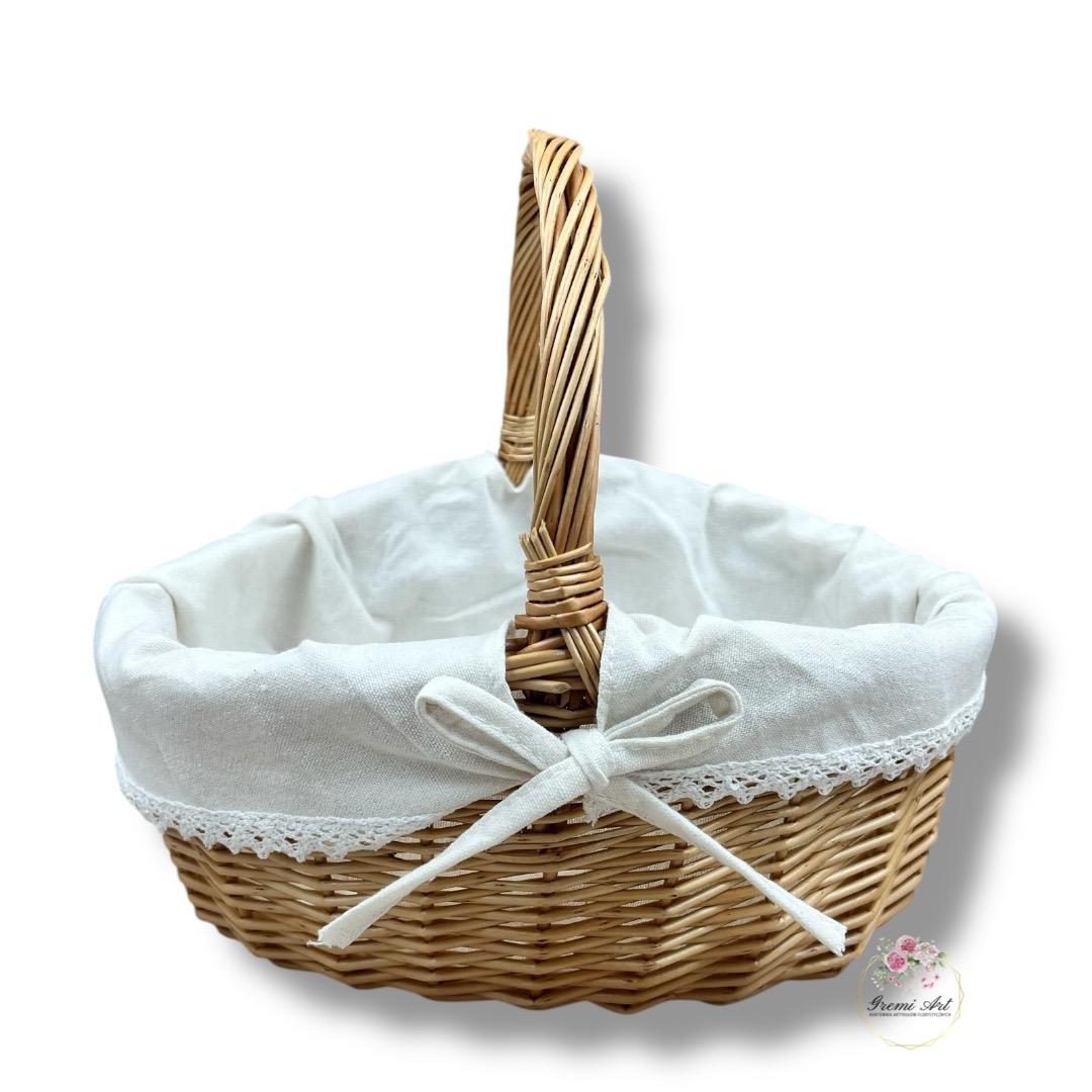 Odkryj urok naturalnych materiałów z naszym owalnym koszem wiklinowym z materiałem. Ten praktyczny kosz o uniwersalnym zastosowaniu, idealny na Wielkanoc, jako kosz prezentowy, kwiatowy i delikatesowy oraz do przechowywania, wprowadzi do Twojego domu subtelny, naturalny akcent. Dodatkowo, materiał wewnątrz kosza można w każdej chwili zdjąć, co czyni go jeszcze bardziej praktycznym i wszechstronnym.