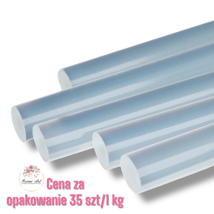 Cena za opakowanie 35 szt! Wkłady klejowe do pistoletu o długości ok. 30cm. Sprzedawane w opakowaniu 1 kg, co jest równowarte z ilością 35 sztuk.