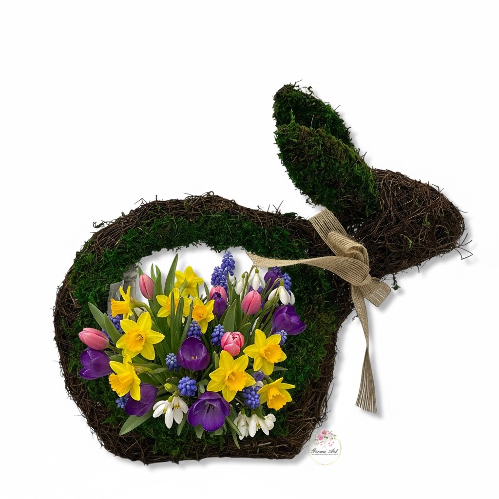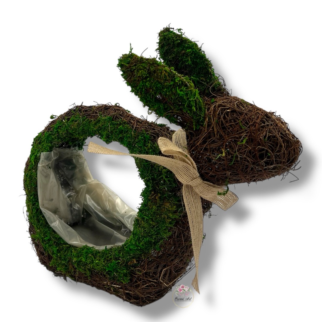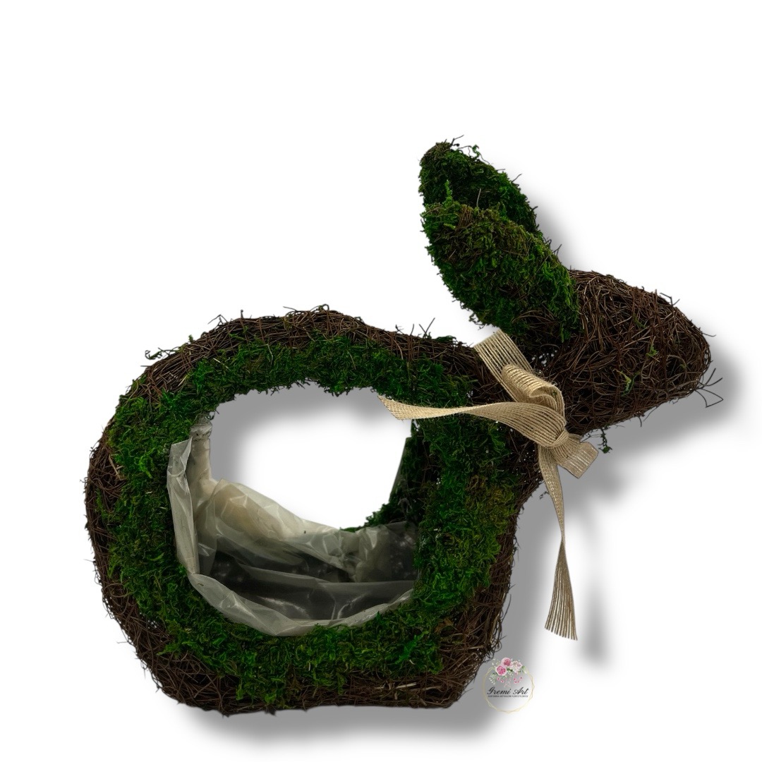 Wprowadź naturalny urok do swojego wnętrza z naszym urokliwym zającem wykonanym z faszyny i mchu. Zając prezentuje się bardzo efektownie i jest idealną bazą do tworzenia świątecznych aranżacji. Jego naturalny i efektowny wygląd sprawi, że doskonale sprawdzi się jako dekoracja wielkanocna, wnosząc świeżość i harmonię do każdej przestrzeni.